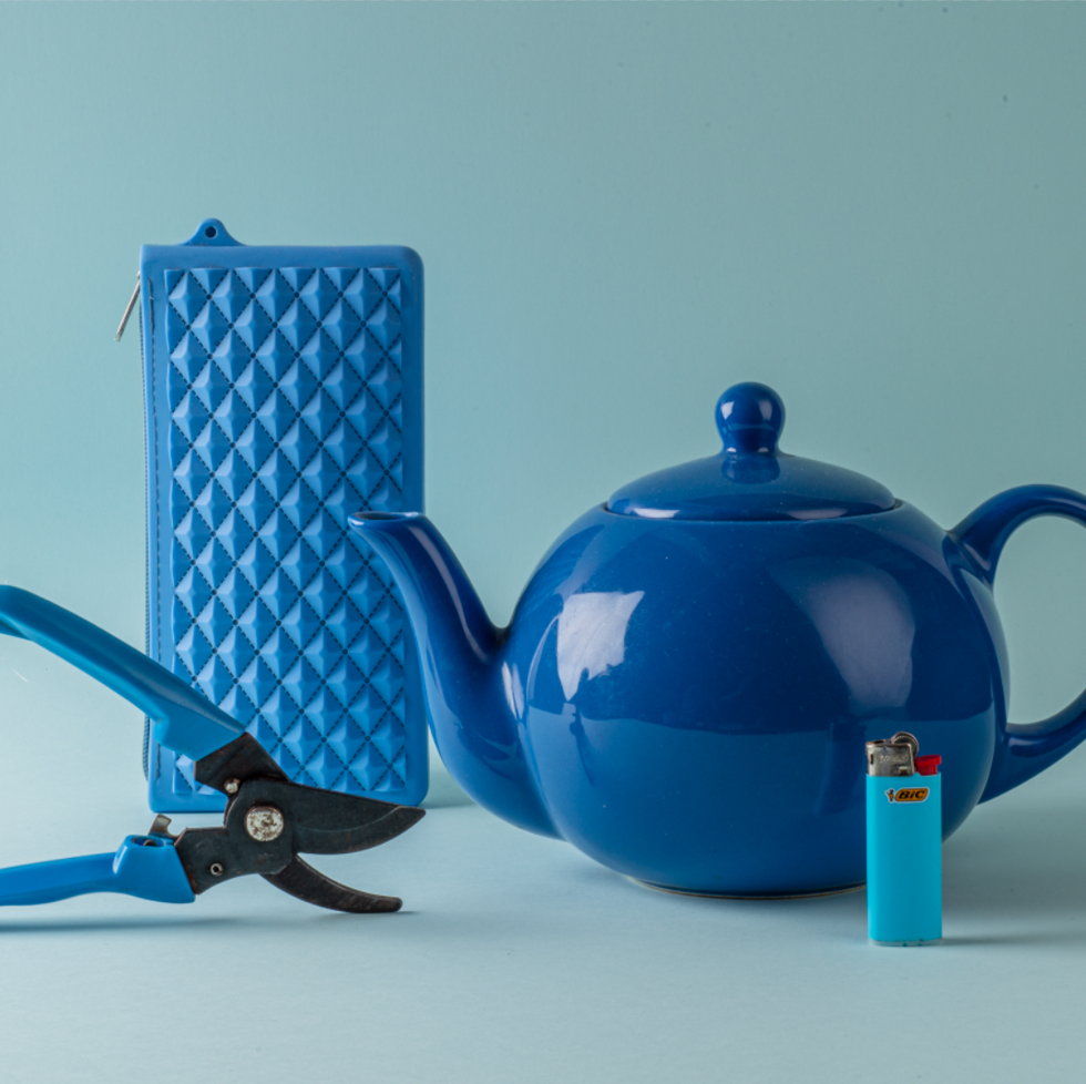 I decided to collect monochromatic colours and create scenes where they all meet and communicate. I was interested to see what colours are used for specific functions that work as indicators we read unconsciously, like alerting and contrasting red for cupcake forms, lids of jars or fly swatter, blue for hygienic purposes & clarity.